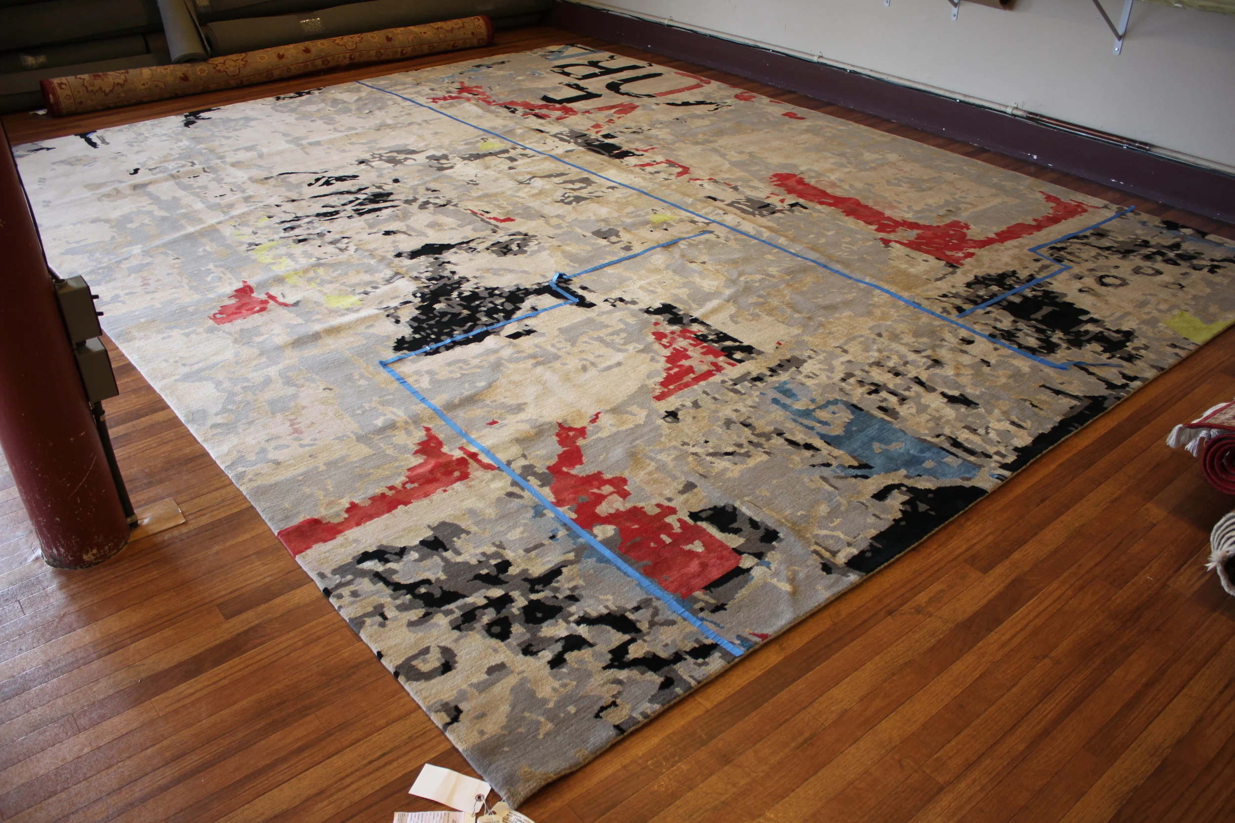 Hand made Tibetan rug to be cut to fit bathroom.